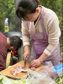大家簇?fù)碓谠钆_前,按專長各顯神通,有些人擅長切菜,有些人擅長掌握柴火的火候,有些人擅長廚藝和配菜,合力完成了一頓香溢撲鼻的美食餐。整個野炊過程有趣而開心,開心和美味交融在一起,陶冶了同事之間的情操。