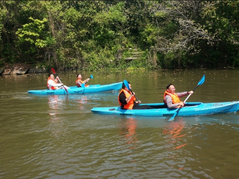 野炊的余興未盡,真人CS、皮劃艇,騎馬以及射箭場館又將我們帶入快樂而刺激的活動之中。首先皮劃艇體驗(yàn),只見湖面上幾位同事盡情地劃動雙槳,感受水的柔美和風(fēng)的輕拂,這一刻仿佛置身于大自然,在雙槳的劃動下,湖面波光漣漣,勇士們忘卻了城市的喧囂,陶醉在船艦前行中。