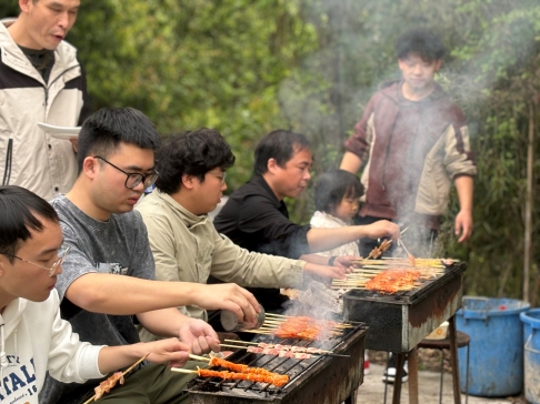 燒烤,這是一種充滿人間煙火氣息的烹飪方式。在燒烤的過程中,伙伴們圍坐在火堆旁,烹飪美食、分享美食,傳遞著溫暖。此情此景,讓人想起了小時(shí)候和家人圍坐在一起烤火的溫馨,透析出家庭成員歡聚一堂的快樂。這份情感,鏈接了同事間和諧的紐帶,隨著炊煙的飄逸,濃縮了快樂和美味。